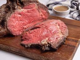 Prime rib, also known as standing rib roast, is a cut of beef from the rib section of the cow. It is known for its tenderness and rich flavor due to a high degree of marbling, making it a popular choice for holiday meals. Weighing between 10-15lbs.